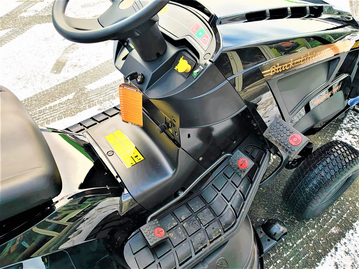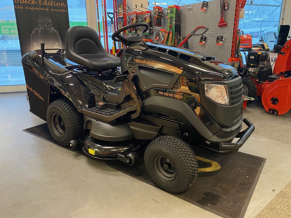 Der neue Rasentraktor PRO 226/102 TWIN H aus der Serie Black Edition ist ein Hochleistungsrasentraktor mit einem starken 586 cm³-Zweizylindermotor ST 600 von STIGA für allerbeste Leistung und Zuverlässigkeit. Ein 102 cm breites Mähwerk mit synchronisierten Messern, zusammen mit einem großen 300-Liter-Fangkorb stellen schnelles und großflächiges Mähen sicher. Zu den weiteren wünschenswerten Merkmalen gehört unter anderem ein stufenloser, pedalgesteuerter hydrostatischer Antrieb.