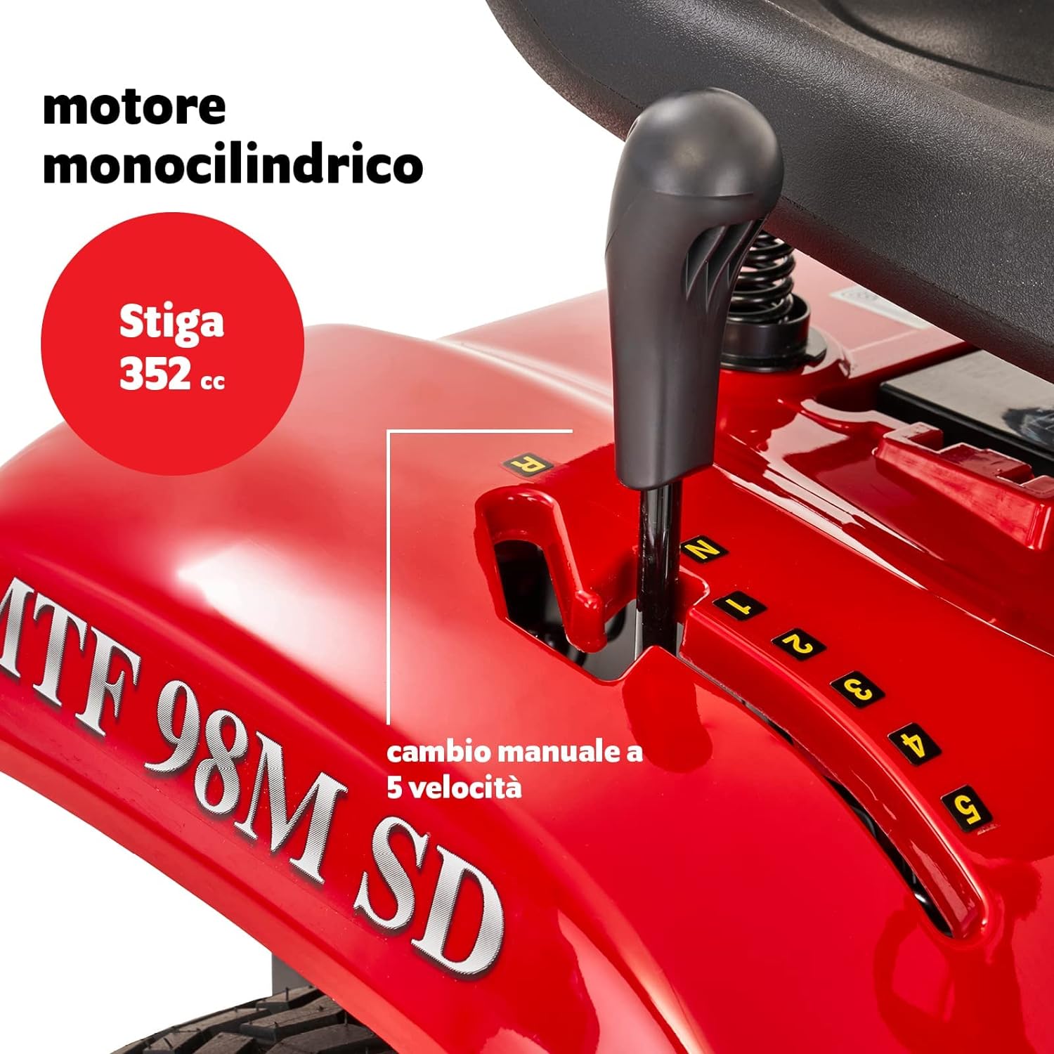 Der Mountfield MTF 98M SD ist ein spezieller Rasentraktor mit Seitenauswurf. Angetrieben von einem Stiga ST350 352ccm Einzylindermotor und ausgestattet mit einem manuellen Getriebe mit 5 Vorwärts- und 1 Rückwärtsgang. Da dieser Aufsitzmäher ohne sperrigen Grasfangkorb auskommt, ist er besonders wendig.