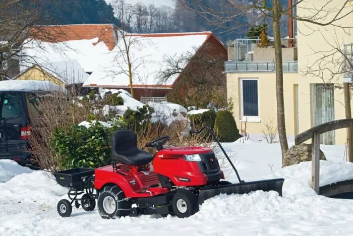 MTD Rasentraktor Optima LG 200 H, Seitendeflektor, Mulchkit, benzinbetrieben, 107 cm Schnittbreite Mit einer großzügigen Schnittbreite von 107 cm und dem leistungsstarken V-Twin-Motor (MTD, V-Twin, 3,1 kW, 679 cm³) ist dieses Modell für große Flächen von bis zu 5.500 m² ausgelegt. Dank des äußerst geringen Wendekreises von nur 46 cm stellen dabei auch Sträucher und Bäume keine ernsthaften Hindernisse dar. Die komfortable Hydrostat-Steuerung per Hand ermöglicht ein stufenloses Einstellen der Geschwindigkeit wobei auch das Mähen im Rückwärtsgang möglich ist. Im Lieferumfang enthalten sind auch der Seitendeflektor und ein Mulchkit zum gleichzeitig parallelen Düngen des Rasens durch den fein geschnittenen Mulch, während der Fangsack optional erhältlich ist. Die Einstellung der Schnitthöhe erfolgt dabei zentral zwischen 30 und 95 mm in fünf Positionen. Licht, ein Soft-Grip-Lenkrad und eine individuelle Einstelloption des Fahrersitzes steuern zudem jede Menge Bedienkomfort bei. Der Sitz kann den Bedürfnissen des Fahrers angepasst werden Kleiner Wenderadius von nur 46 cm Durchsteigerahmen für bequemes Auf- und Absteigen Parkbremse an der linken Seite Schnitthöhenverstellung und Mähwerkskupplung Mit Licht für einfaches Arbeiten auch während der Dämmerung Mit OCR-Technologie zum Mähen beim Rückwärtsfahren inkl. Mulchkit und Seitendeflektor Technische Daten Motortyp MTD, V-Twin Hubraum 679 cm² max. Motorleistung 13,1 kW Umdrehungen pro Minute 2.800 min−¹ Motorstart E-Starter Tankvolumen 3,8 l Antrieb (Getriebe) Hydrostat mit Handsteuerung Schnittbreite 107 cm Flächenleistung 5.500 m² Schneidstufen 5 Positionen und Rückwärtsmähfunktion (OCR) Schnitthöhe 30-95 mm Reifengröße vorne 15″ x 6″ Reifengröße hinten 20″ x 8″ Abmessungen (L x B x H) 170 x 115 x 100 cm Gewicht 175 kg Lieferumfang 1 x MTD Rasentraktor Optima LG 200 H, inkl.